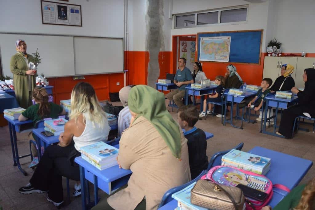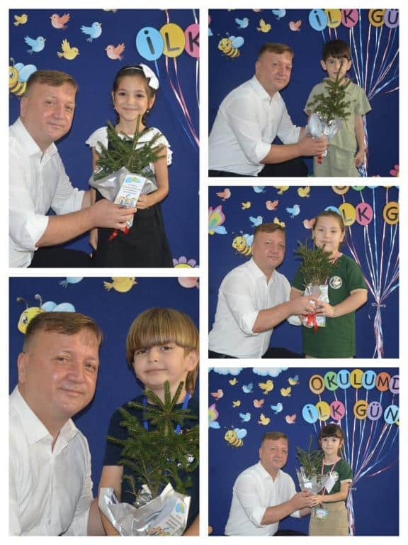 Bu yıl birinci sınıflara ders verecek olan öğretmenlerimizden Güzün Boğoşli, sınıfındaki öğrencilerine anlamlı bir sürpriz yaparak, yalnızca kitap değil, aynı zamanda doğa bilincini aşılayacak çam ağacı fidanları da hediye etti. Öğrencilerinin masalarına yerleştirdiği kitaplarının yanına, her birine bir çam fidanı bırakarak hem doğayı hem de çevre duyarlılığını teşvik etti.